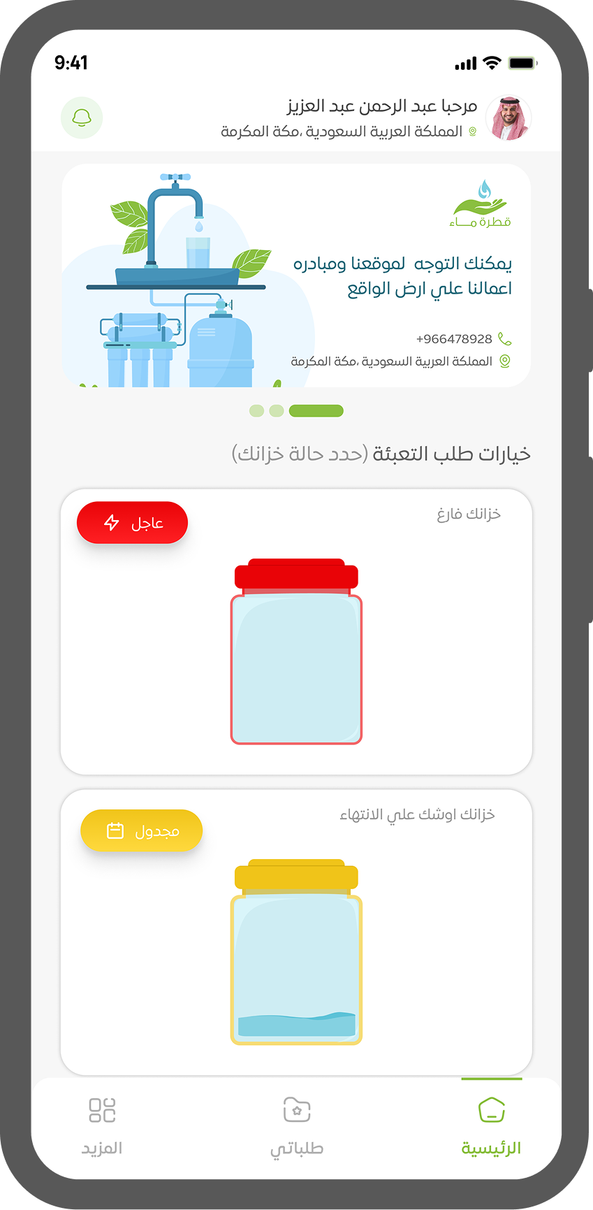 إمكانية تقديم طلب تعبئة الخزان دون الحاجة للحضور أو الانتظار.